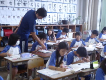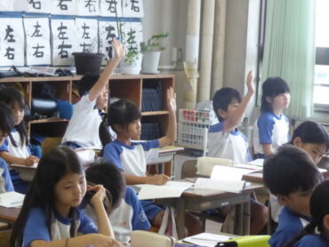4年生の教室では、算数科「倍の見方」の学習で、「基準量を1とみる」という倍の見方を使って問題を解いていました。問題文を読み取り、テープ図に表してどんな式になるかを考えていました。