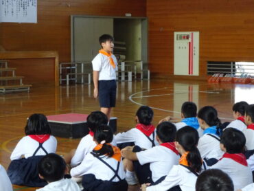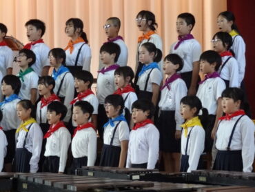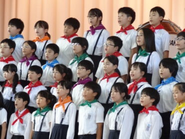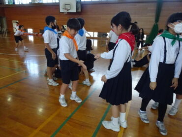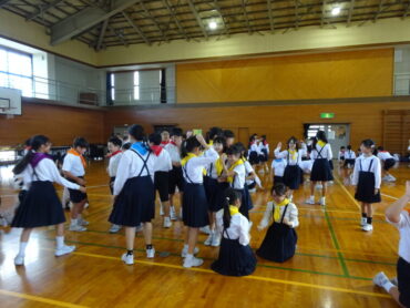 第二部の交流会では、両校の4・5年生全員で、交流ゲーム「進化じゃんけん」と「ビリーブ」の全員合唱を行い、親交を深めました。