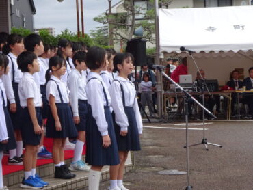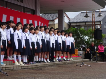 2025.10.21 5年生 5年生 八丁道おもしろ市出演(10/19) 10月19日(日)に開催された第68回八丁道おもしろ市で、5年生が合唱を披露しました。曲は「大切なもの」「ビリーブ」の2曲です。これまで学習発表会や音楽交流会に向けて練習してきた成果を地域の皆さんにも聞いていただきました。