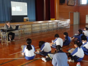 5年生は、ものづくり・デザイン科の学習で、高岡市美術館 館長の村上 隆先生にご来校いただき、デザインについてのお話を聞きました。フィボナッチ数列や黄金比と自然物や人工物との関わりについての話を中心に、デザインの秘密について教えていただきました。また、高岡市のものづくりの技術が様々なところで生かされている誇らしいものであることを教えていただきました。