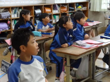 2025.10.28 NEW 3年生 今日の下関っ子(10/28) 3年生が、外国語活動の学習で、ALTの先生からアメリカのハロウィンについて教えていただきました。仮装のことやお菓子のこと、パーティーや映画、デコレーションハウスのことなど、ハロウィンについて、画像や動画を交えて教えていただき、子供たちは目を輝かせていました。