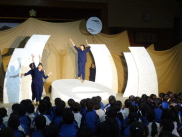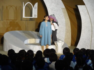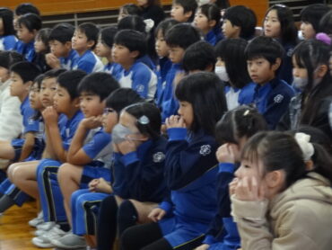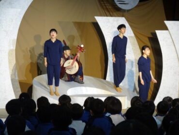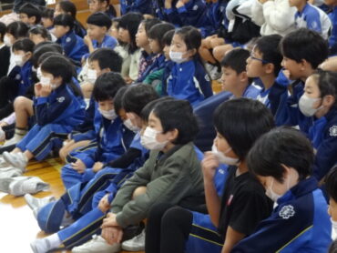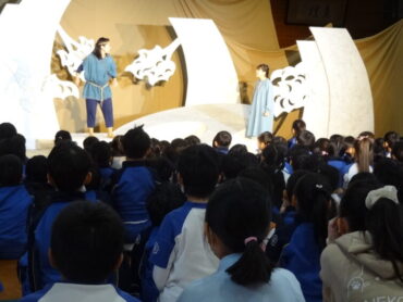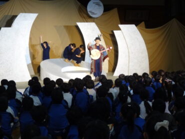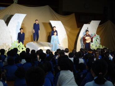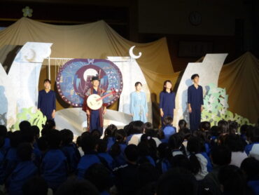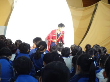 劇団風の子中部の方々をお招きして、芸能鑑賞会を行いました。午前中に下学年、午後から上学年と2回に分けて鑑賞しました。演目は、「ユエと瑠璃色の石」というお話です。劇団の方は5人だけでしたが、迫力のある演技でつくられた世界に、子供たちは引き込まれていました。