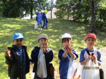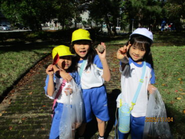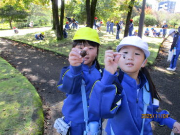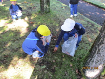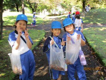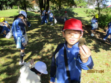 1年生が、生活科の「あきをたのしもう」の学習で、みどりの丘公園に秋見つけに出かけました。どんぐりや松ぼっくり、くり等の「あき」を探しながら秋の自然と触れ合いました。この後の学習では、今日見つけた「あき」を使っておもちゃを作るなどして、秋を楽しみます。思いっきり楽しめるといいですね。