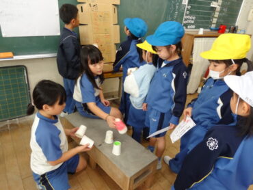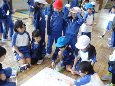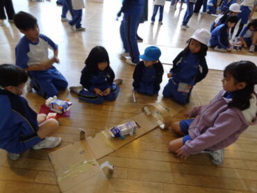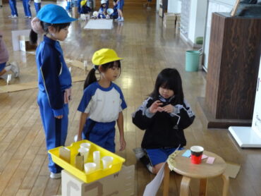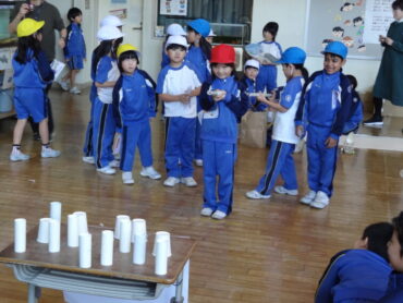 2025.11.26 1年生 2年生 1・2年 あそびランド(11/26) 2年生が1年生を招待して「あそびランド」を開催しました。2年生が、生活科で作った「動くおもちゃ」を使った遊びを考え、楽しく遊べるルールを考えたり、遊びに必要なものをつくったりしながら、これまで準備を進めてきた活動です。2年生の3つの教室と大ホールを会場とした大きなイベントとなりました。招待した2年生も、招待された1年生も、どちらもとても楽しそうに活動しながら交流を深めていました。