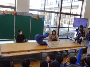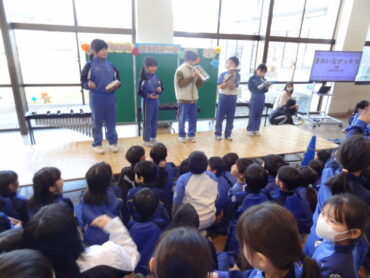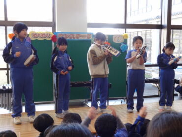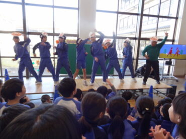2学期「わくわくオンステージ」の2日目を開催しました。今回は、音楽とダンスの発表でした。今日は、5組の子供たちが、リコーダーや木琴を演奏したり、朗読やマット運動、ダンスを披露しました。今日も、たくさんの子供たちが大ホールに集まり、大盛り上がりでした。