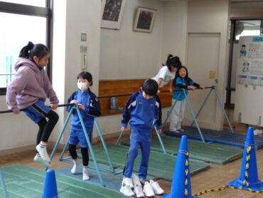 2026.1.9 NEW 1年生 2年生 今日の下関っ子(1/9) 1年生が、生活科の学習で冬の遊びについて話し合っていました。たくさん見付けた冬の遊びの中から、「けん玉」や「カルタ」「お手玉」「めんこ」「だるま落とし」「こま」等の昔から伝わる遊びをみんなで体験し、楽しんでいました。 休み時間の大ホールでは、低学年の子供たちが鉄棒や大縄跳び等をして、寒さに負けずに体を動かして楽しんでいました。