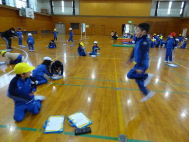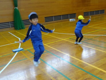 今日はとても寒い日でしたが、1年生は体育科の学習で、マット運動と縄跳び運動に取り組んでいました。マット運動で、2学期に練習した前転・後転を先生に見てもらったり、縄跳び運動では、ペアになって前とびや後ろとびを練習したりして、寒さに負けず、運動を楽しんでいました。