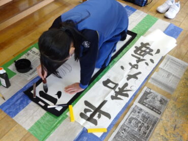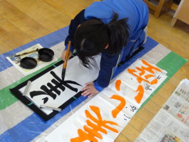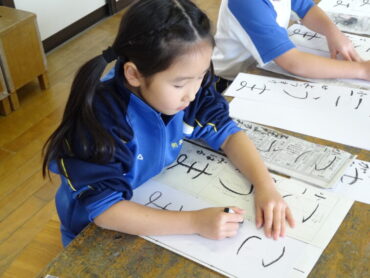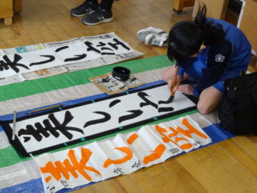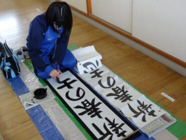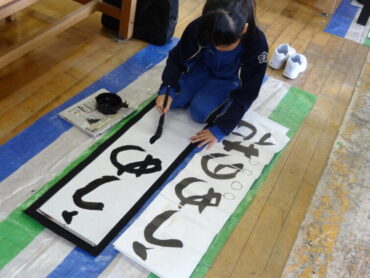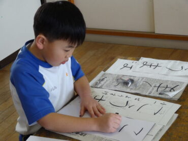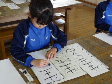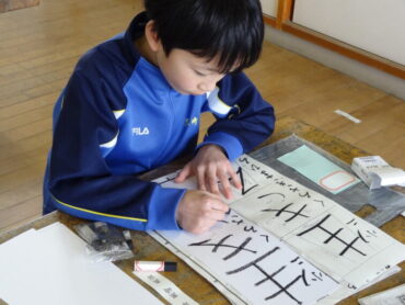 先日の校内書初大会で県の大会に出場する代表に選ばれた子供たちの練習会を昼休みに行いました。図工室に集まって、一画一画集中して練習に取り組んでいました。代表に選ばれた子供たちですので、どの子もとても素敵な字を書いていました。これから県大会を目指して、さらに磨きをかけていきます。頑張れ‼