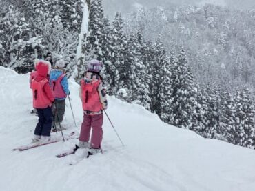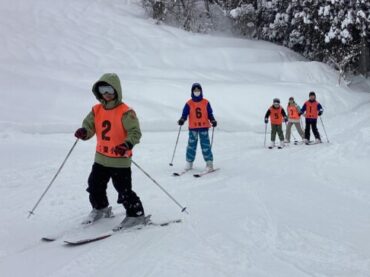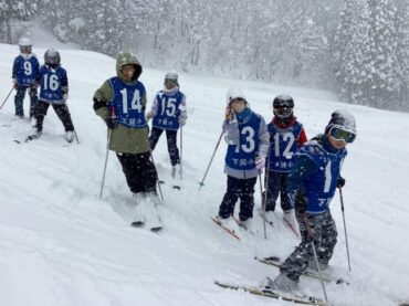 2026.2.2 NEW 5年生 5年 スキー学習(1/30) 先週の6年生に引き続き、5年生がタカンボースキー場でスキー学習を行いました。今回も大雪と重なり、天候や道路状況が心配されましたが、実施することができました。スキー場でも雪が降り、圧雪された雪面に、さらに新雪が積もるゲレンデコンディションでの練習となりました。5年生の子供たちは、スキー初心者が多く、スキー靴の履き方から講師の先生に丁寧に教わり、初めてスキーを履いた子供たちもスキーを楽しむことができました。