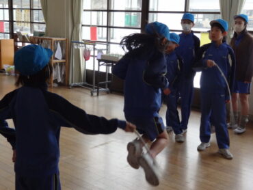 お昼のファミリー活動の時間に、ジャンプロープ大会に向けた大縄跳びの練習をファミリー班ごとに行いました。どのファミリー班も引っかかる回数が少なくなり、低学年の子供たちも上手に跳べるようになっていました。ジャンプロープ大会本番では、どんな記録が出るのか楽しみです。