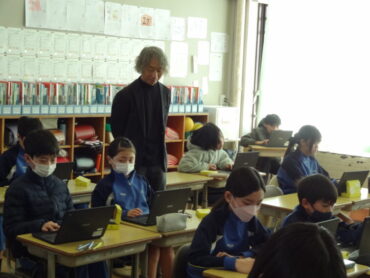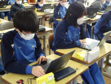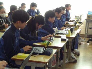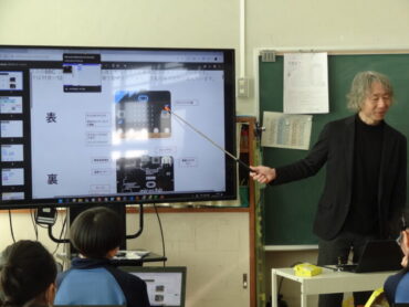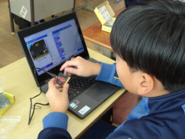 2026.2.12 NEW 6年生 今日の下関っ子(2/12) 6年生が、情報の学習に取り組みました。外部講師の先生を招いて、教育向けのマイコンボードである「micro:bit」を使ってプログラミングの学習を行いました。「micro:bit」には、25個のLEDと2個のボタンスイッチのほか、多数のセンサーを搭載しています。今日は、「micro:bit」に自分の名前を表示させたり、押すボタンによって、向きの違った矢印を表示させたりして、簡単なプログラムを作って楽しみました。