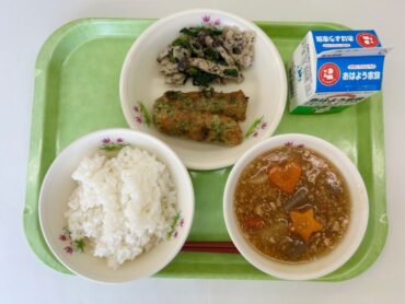 今日、2月13日は「日本遺産の日」です。今日の給食は、高岡市が誇る歴史や文化の一端を給食で表現した「高岡日本遺産給食」でした。