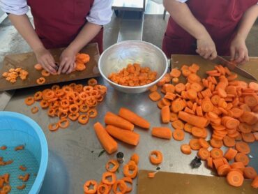 「金屋町の石畳煮」には、調理員さんが一つ一つ型抜きをして作ってくださった星形やハート形等の人参も入っていました。