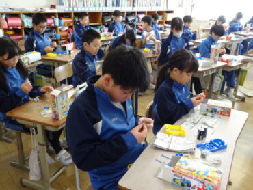 2026.2.17 NEW 5年生 今日の下関っ子(2/17) 5年生は、理科「電流のうみ出す力」で、電磁石について学習をしています。今日は、電磁石を使ってモーターをづくりに挑戦しました。電磁石と磁石の性質を利用して回るモーターを友達と教え合いながらつくり、モーターがうまく回ったときの子供たちの顔からは、喜びと満足感があふれていました。