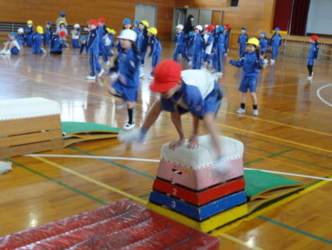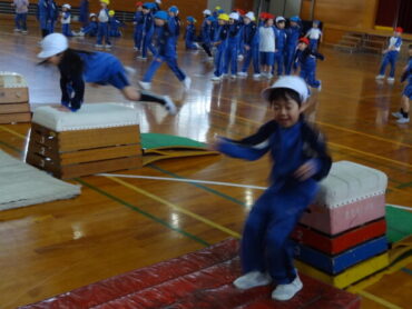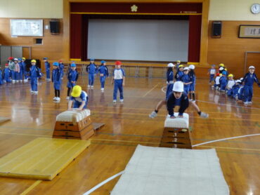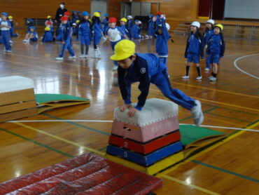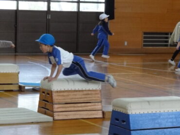 2026.2.19 1年生 今日の下関っ子(2/19) 1年生は、体育科の学習で「跳び箱」に挑戦しています。踏み切りや手のつき方、着地に気を付けながら、自分に合った高さの跳び箱で「開脚跳び」の練習に何度も繰り返し取り組みました。