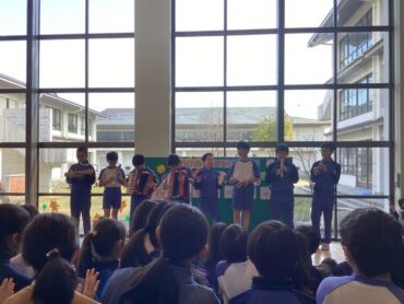 2026.3.17 NEW 全校生 3学期わくわくオンステージ 1日目(3/12) 3学期の「わくわくオンステージ」を開催しました。今回は、4日間に分けて行います。1日目の今日は、卒業式直前の「卒業スペシャル」ということで、6年生を含めたたくさんの子供たちのほか、教職員の出演もありました。